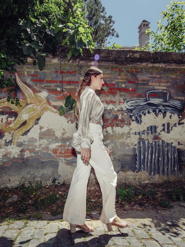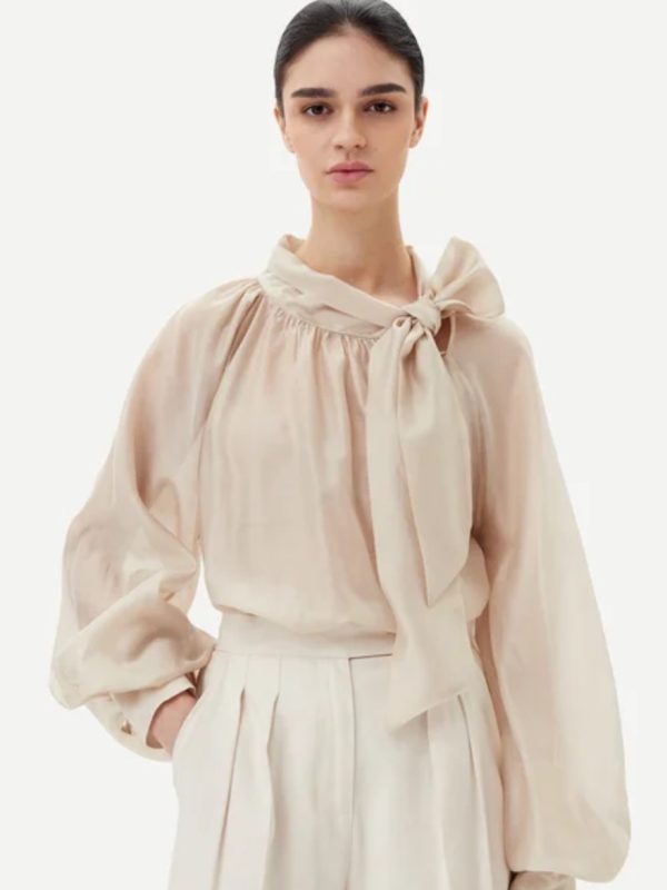 Vicolo Over Sleeve Shirt with Bow – Beige