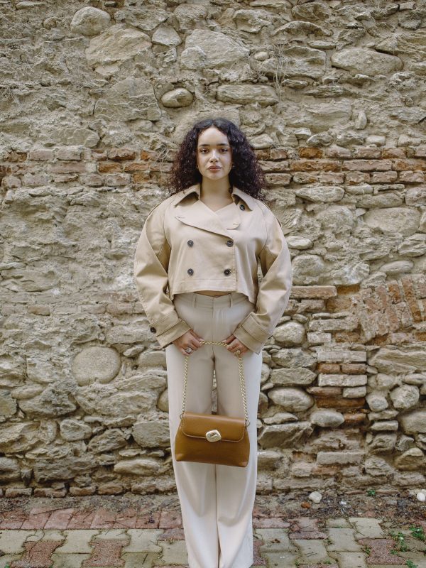 Vicolo Cropped Trench Coat – Beige