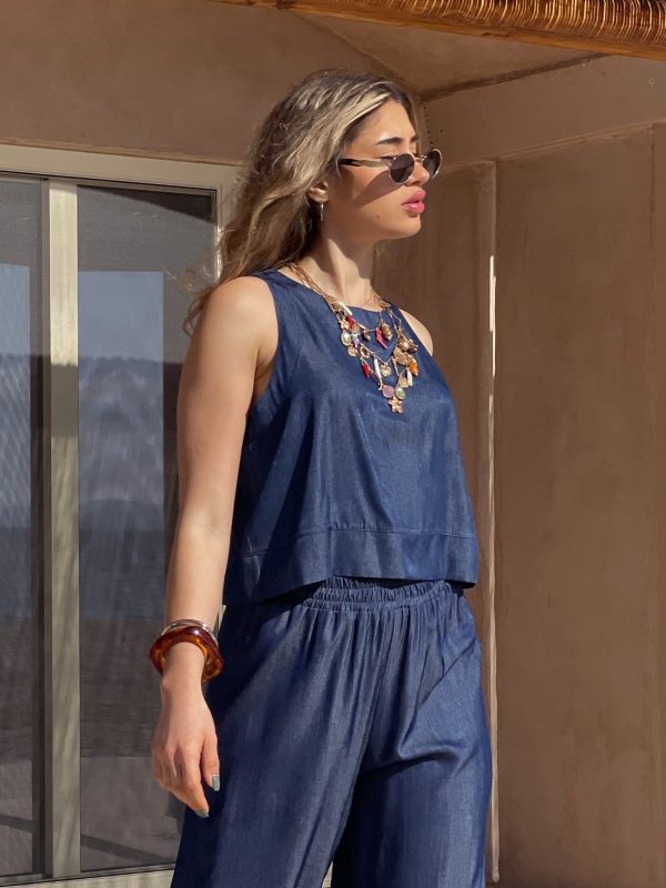 - Crop αμάνικο denim τοπ