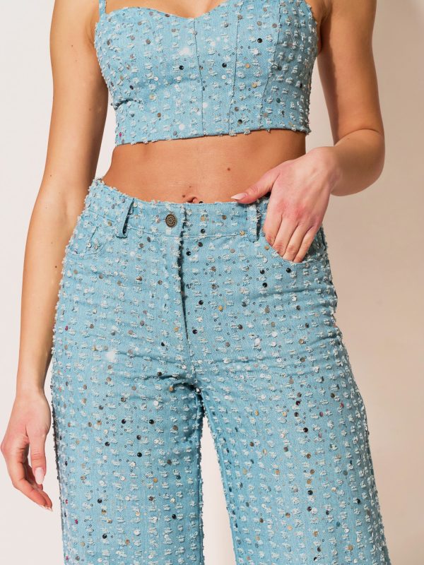 - Παντελόνι τζιν ψηλόμεσο, με cropped τελείωμα μέχρι τον αστράγαλο