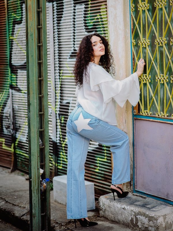 • Εντυπωσιακό τζιν παντελόνι με διακοσμητικά αστέρια στο πίσω μέρος