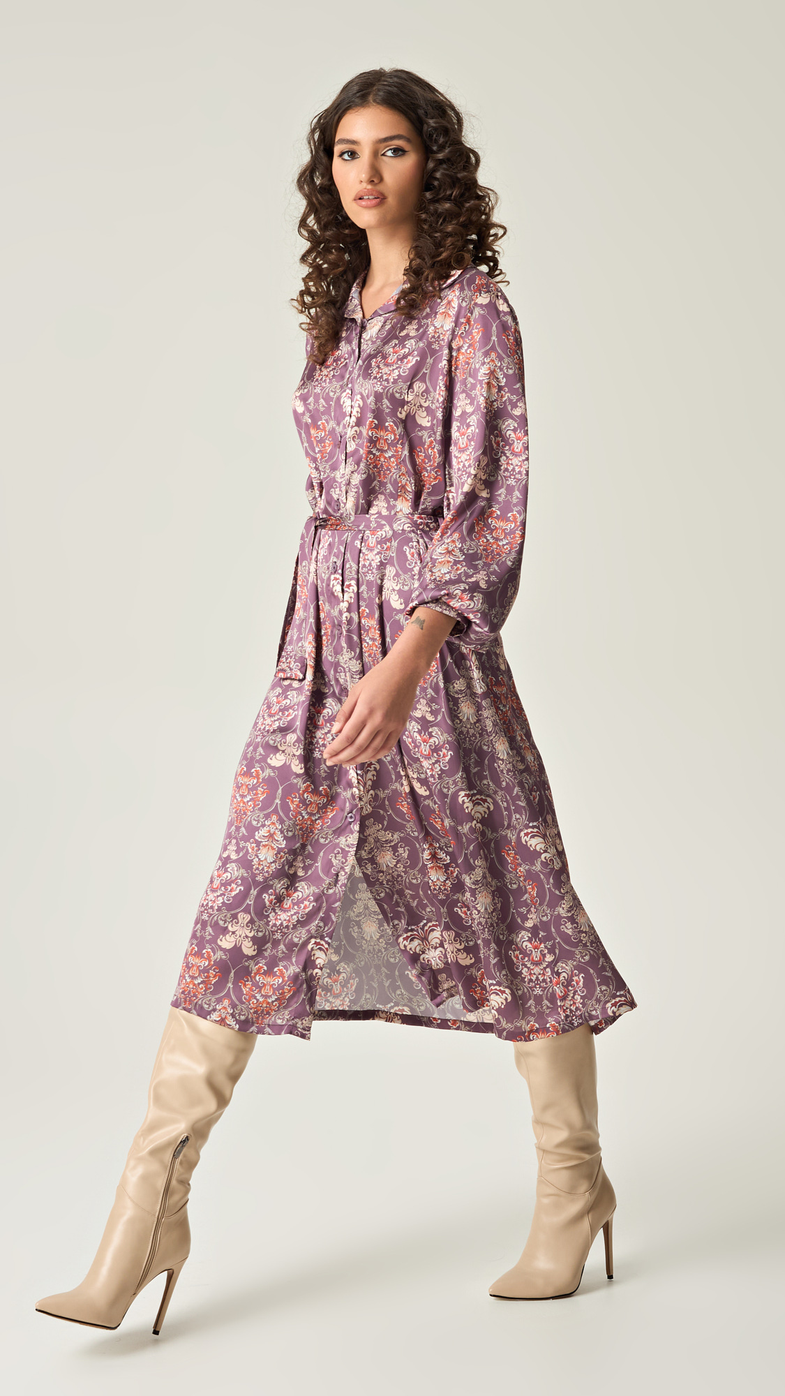 Αναβαθμίστε το στυλ σας με το Amethyst Grace Satin Shirt Dress. Αυτό το κομψό shirt dress, φτιαγμένο από πολυτελές σατέν ύφασμα με silk touch υφή, διαθέτει ένα μοναδικό floral μοτίβο σε αμέθυστο χρώμα, που αποπνέει θηλυκότητα και εκλεπτυσμένη κομψότητα. Ιδανικό για κάθε περίσταση, από πρωινές εμφανίσεις μέχρι βραδινές εξόδους, προσφέροντας άνεση και στυλ.