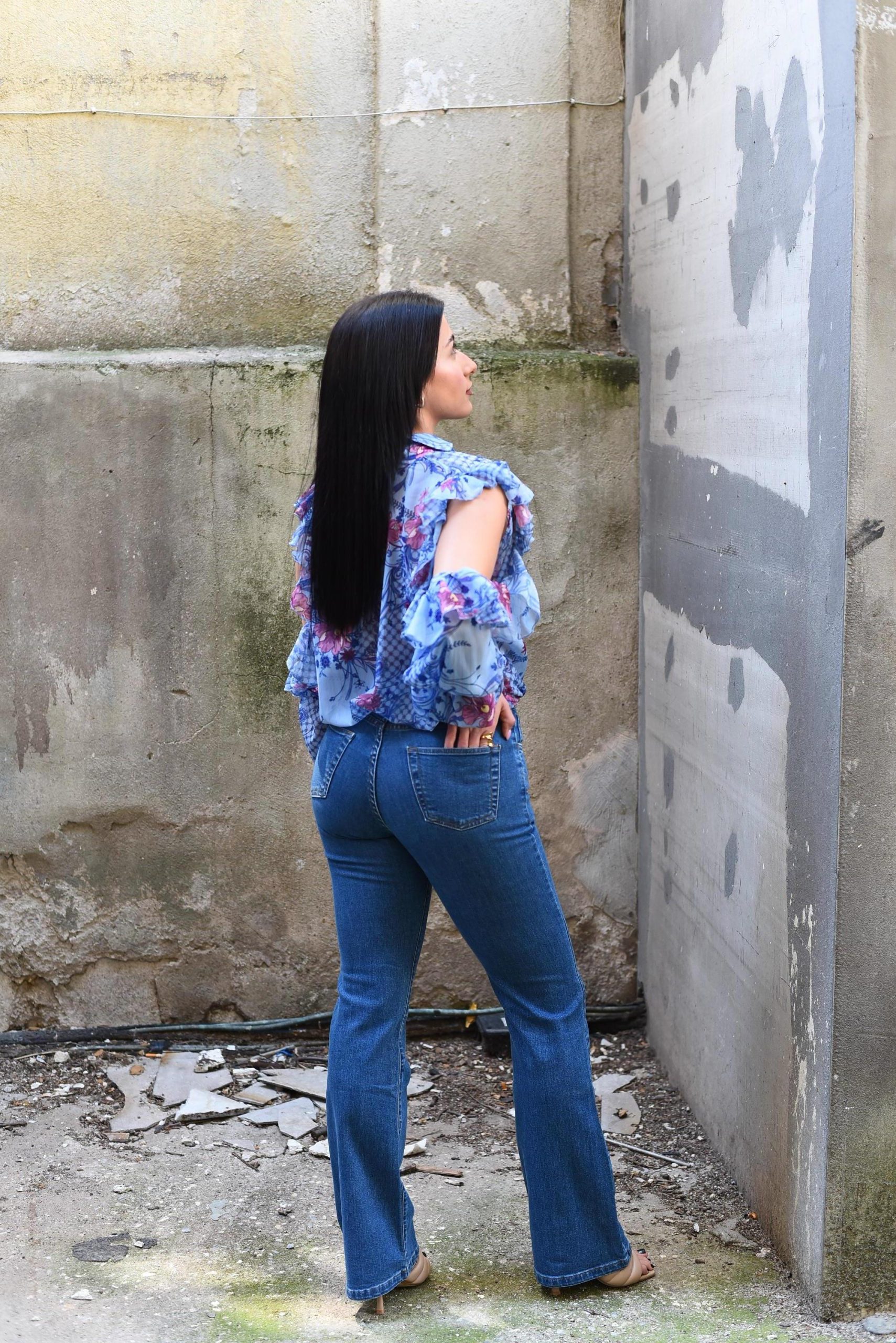 Αυτό το πουκάμισο από ανάλαφρη ημιδιάφανη μουσελίνα με χρυσοκλωστή, με εντυπωσιακό φλοράλ μοτίβο σε αποχρώσεις του γαλάζιου και ροζ, με παιχνιδιάρικες ρετρό αναφορές είναι μια statement επιλογή που συνδυάζει ρομαντισμό και μοντέρνα κομψότητα. Ξεχωρίζει για τα διακοσμητικά βολάν που διατρέχουν τους ώμους και τα ανοίγματα στα μανίκια. Ο κλασσικός γιακάς και η χαλαρή γραμμή προσδίδουν φινέτσα και άνεση.