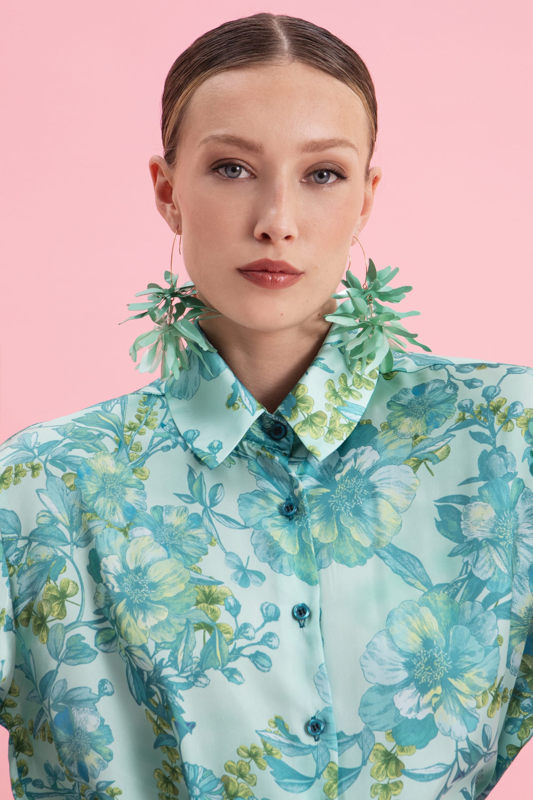 Αυτό το σατέν πουκάμισο είναι η απόλυτη ενσάρκωση της φρεσκάδας και της πολυτέλειας, αποπνέοντας μια εκλεπτυσμένη, θηλυκή αύρα μέσα από τη λάμψη του υφάσματος και το δροσερό του floral μοτίβο. Ένα κομμάτι που μπορεί να μεταμορφώσει κάθε καλοκαιρινή εμφάνιση. Κατασκευασμένο από εξαιρετικά απαλό και γυαλιστερό σατέν με ελαφριά ροή και πολυτελή υφή που χαρίζει κομψότητα και άνεση. Κλασική γραμμή με ελαφρώς loose fit για άνετη εφαρμογή που μπορεί να φορεθεί μέσα ή έξω από το κάτω μέρος. Ο γιακάς του είναι πουκαμισοειδής, δομημένος για καθαρό και σοφιστικέ look. Το floral σχέδιο σε γαλαζοπράσινη βάση, με λεπτομέρειες λουλουδιών σε αποχρώσεις του aqua, του πετρόλ και του lime δημιουργεί μια ήρεμη, τροπική αίσθηση. Φόρεσέ το με το Botanical Breeze Satin Pants για total satin floral look. Ιδανικό για πρωινές εμφανίσεις με statement σκουλαρίκια ή βραδινές εξόδους και ιδιαίτερες περιστάσεις με πέδιλα και clutch.