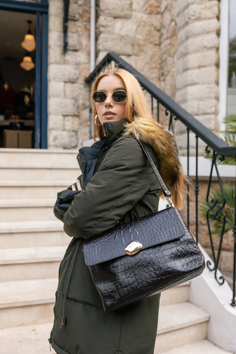 Ciara Large – Black croco genuine leather with gold