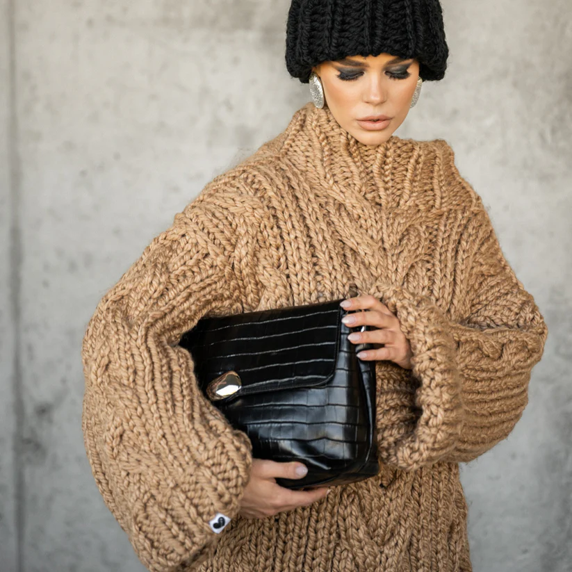Ciara Large – Black croco genuine leather with silver