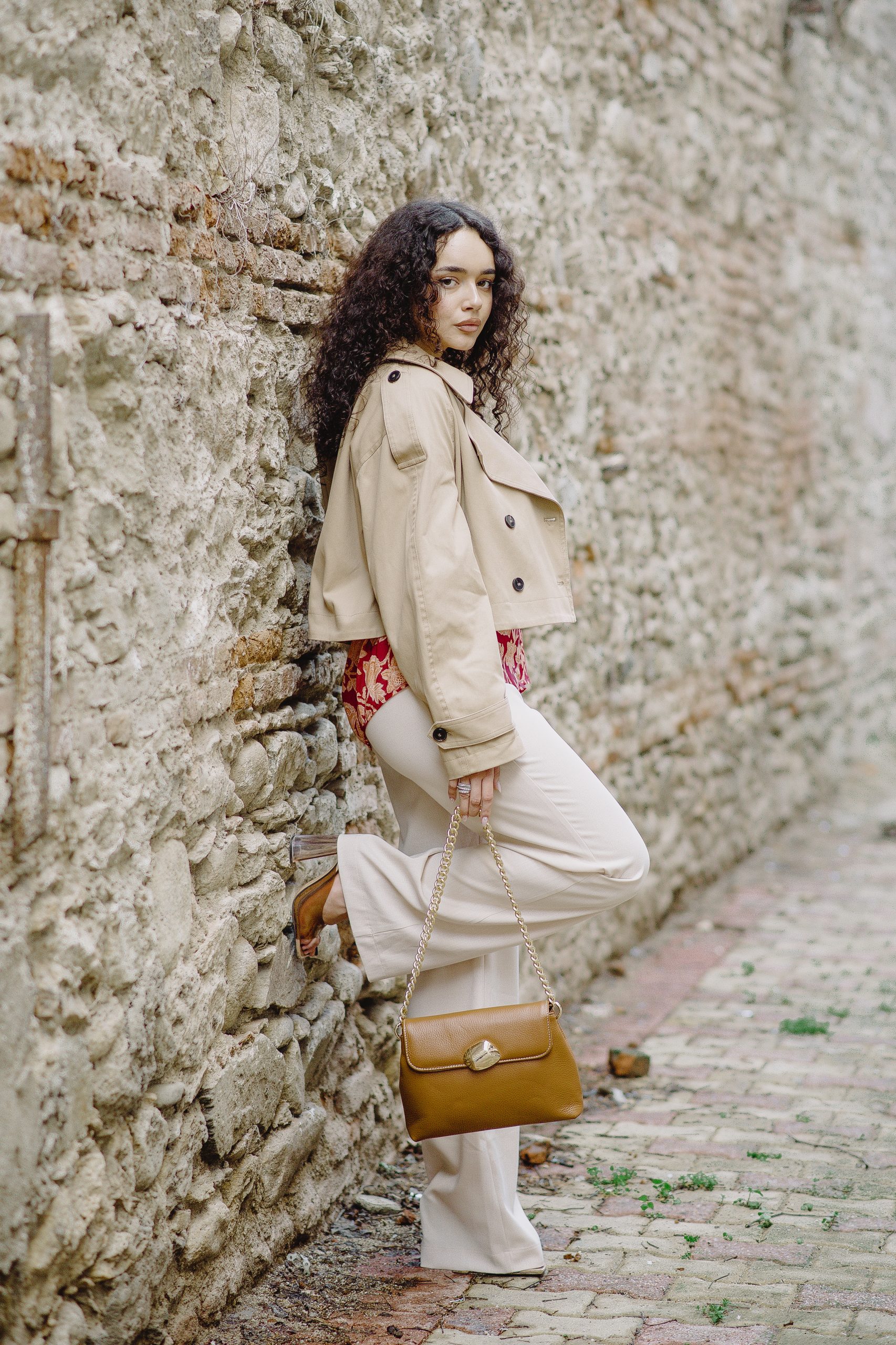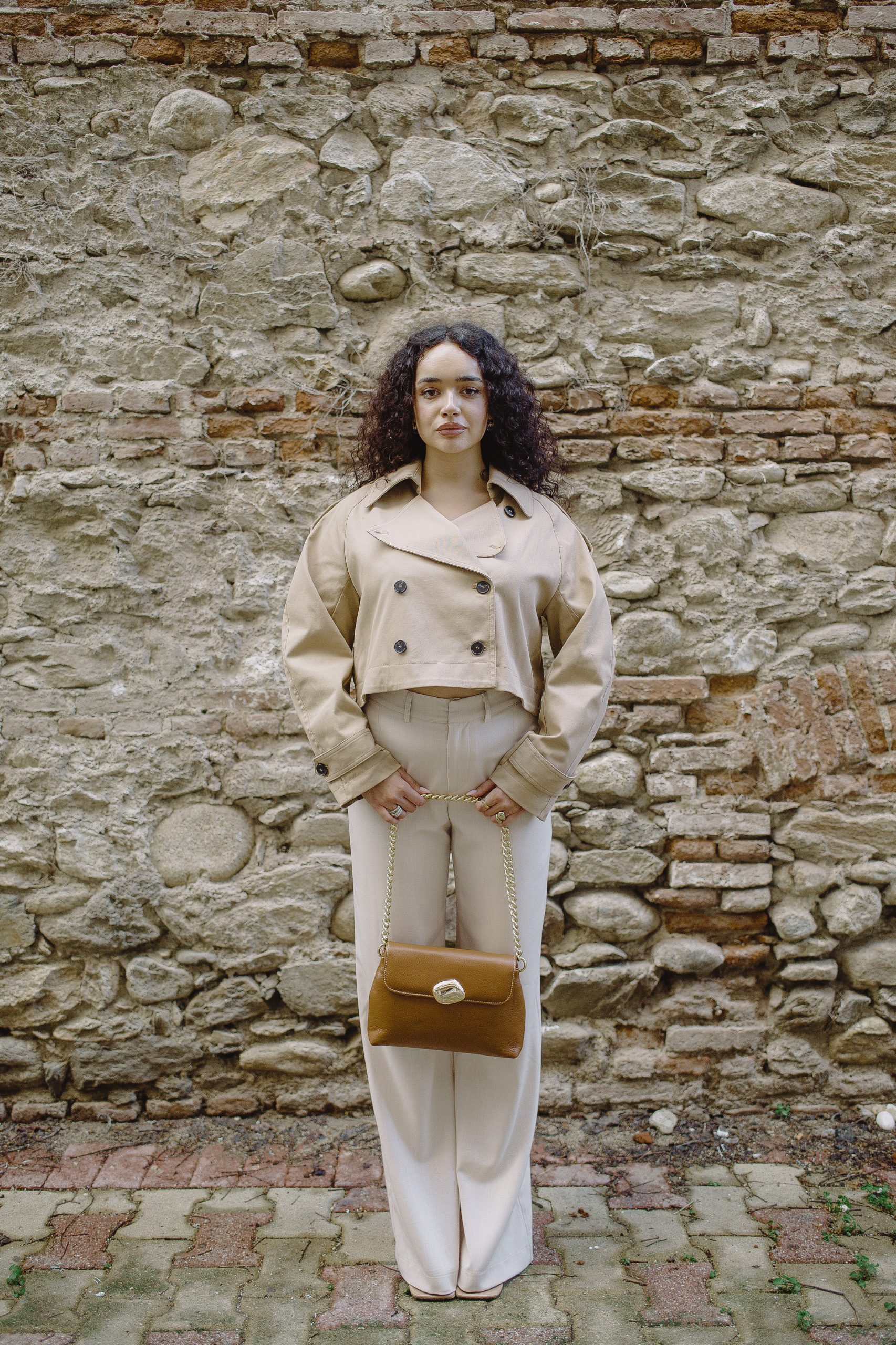 Vicolo Cropped Trench Coat – Beige