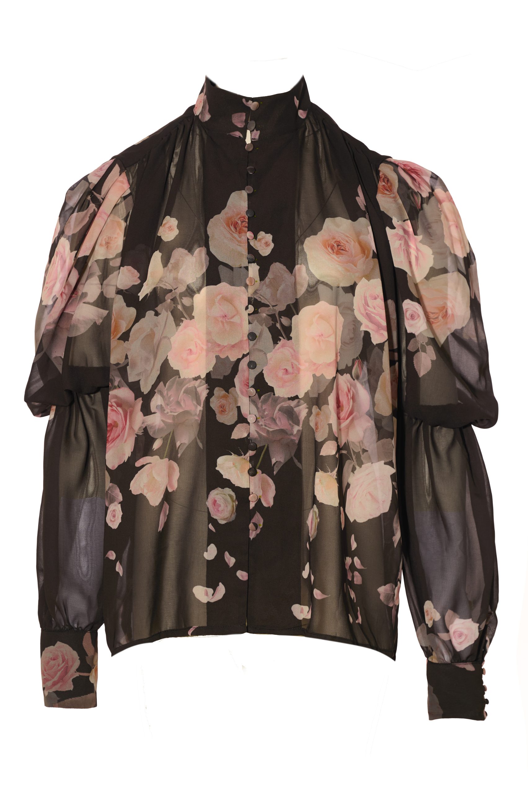 Το Blaire Balloon Shirt είναι ένα αέρινο γυναικείο πουκάμισο με balloon μανίκια και όρθιο γιακά, σχεδιασμένο για να δίνει ιδιαίτερο όγκο και κομψότητα στο σύνολο. Το floral print, αποκλειστικά σχεδιασμένο για τη συλλογή, αποτυπώνεται σε μαύρη βάση με ροζ αποχρώσεις, δημιουργώντας μια εντυπωσιακή και σύγχρονη αντίθεση.