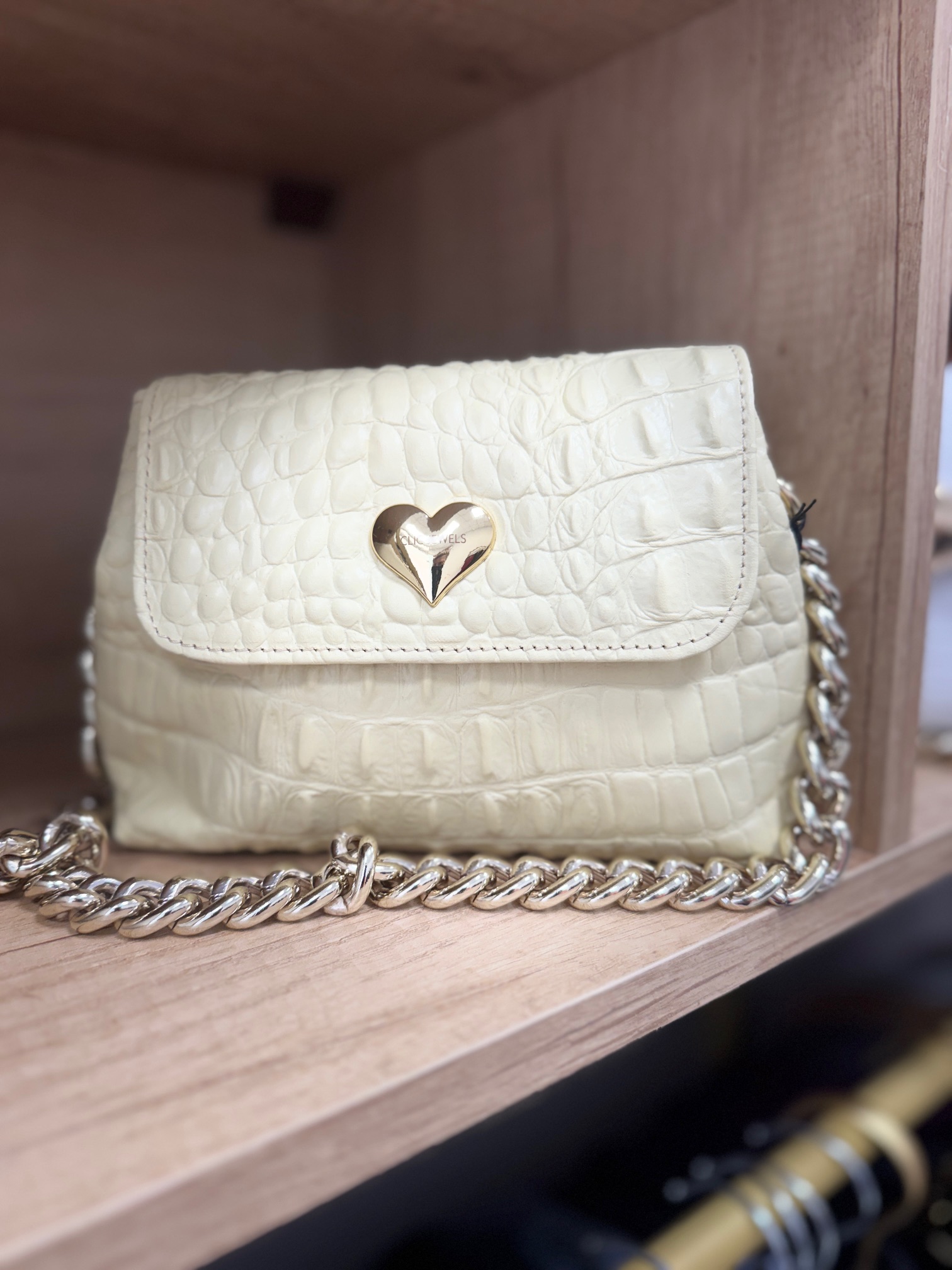 Maya Minibag – Heart vanilla yellow croco genuine leather