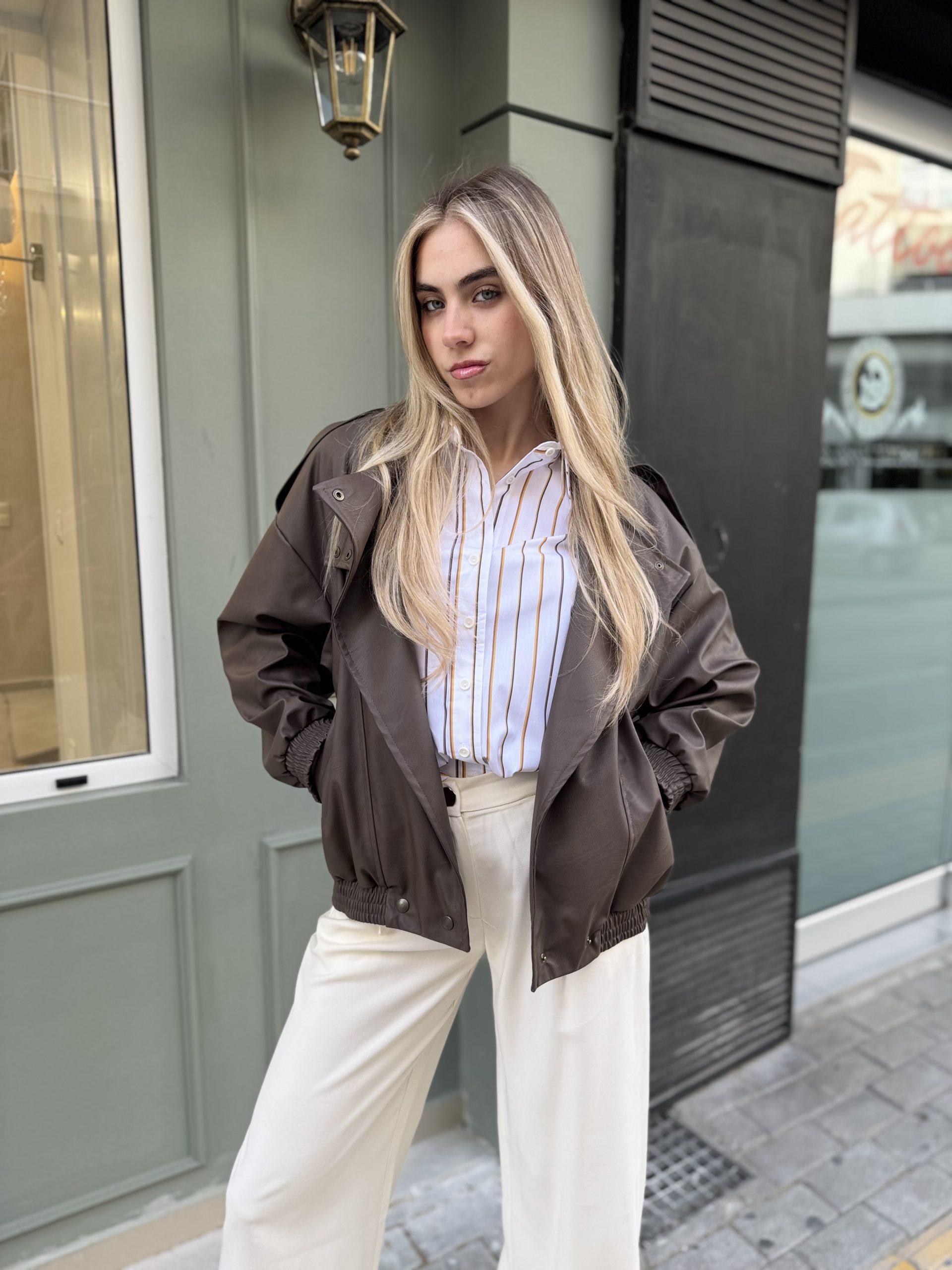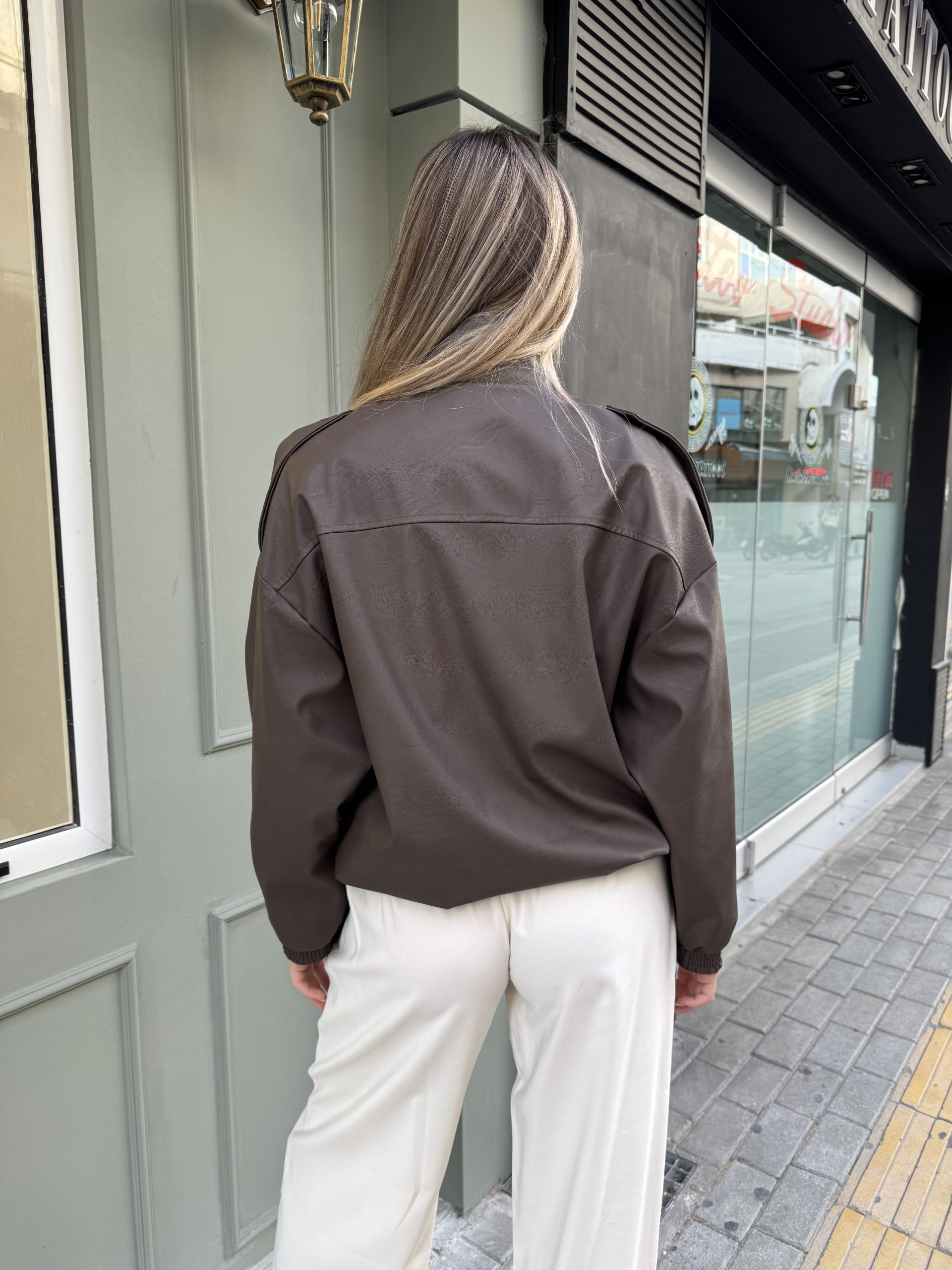 Το Cocoa Luxe Bomber Jacket σε βαθιά σοκολατί απόχρωση συνδυάζει την άνεση με την υψηλή αισθητική. Σχεδιασμένο σε oversized γραμμή τύπου bomber, προσφέρει έναν αέρα ανεπιτήδευτης κομψότητας σε κάθε σας εμφάνιση. Συνδυάστε το με λευκό παντελόνι σε φαρδιά γραμμή για ένα clean look, ή με το αγαπημένο σας denim και sneakers για τις καθημερινές σας βόλτες στην πόλη.