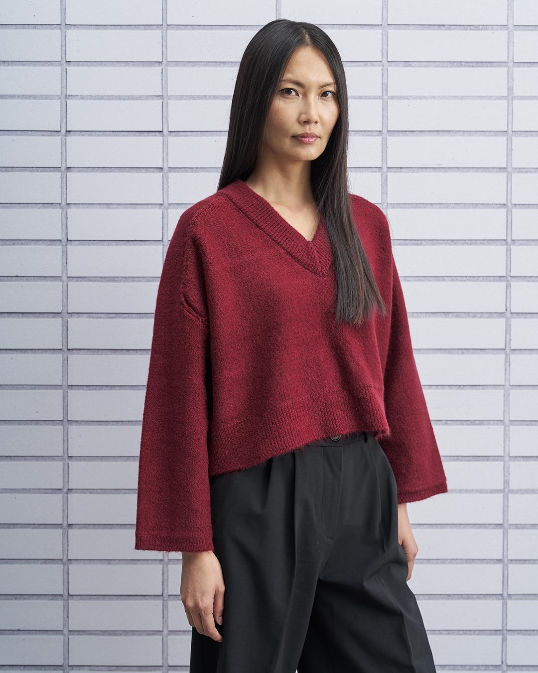 Tailor Made Relaxed Knit Sweater V neck – Bordeaux