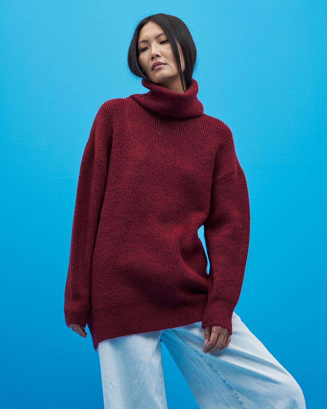 Tailor Made Relaxed Knit Turtleneck Sweater – Bordeaux