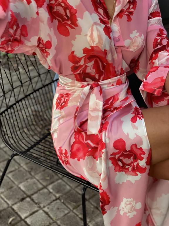 Η Rose maxi skirt είναι μια maxi φούστα με ροζ βάση στο ύφασμα και κόκκινα λουλούδια.