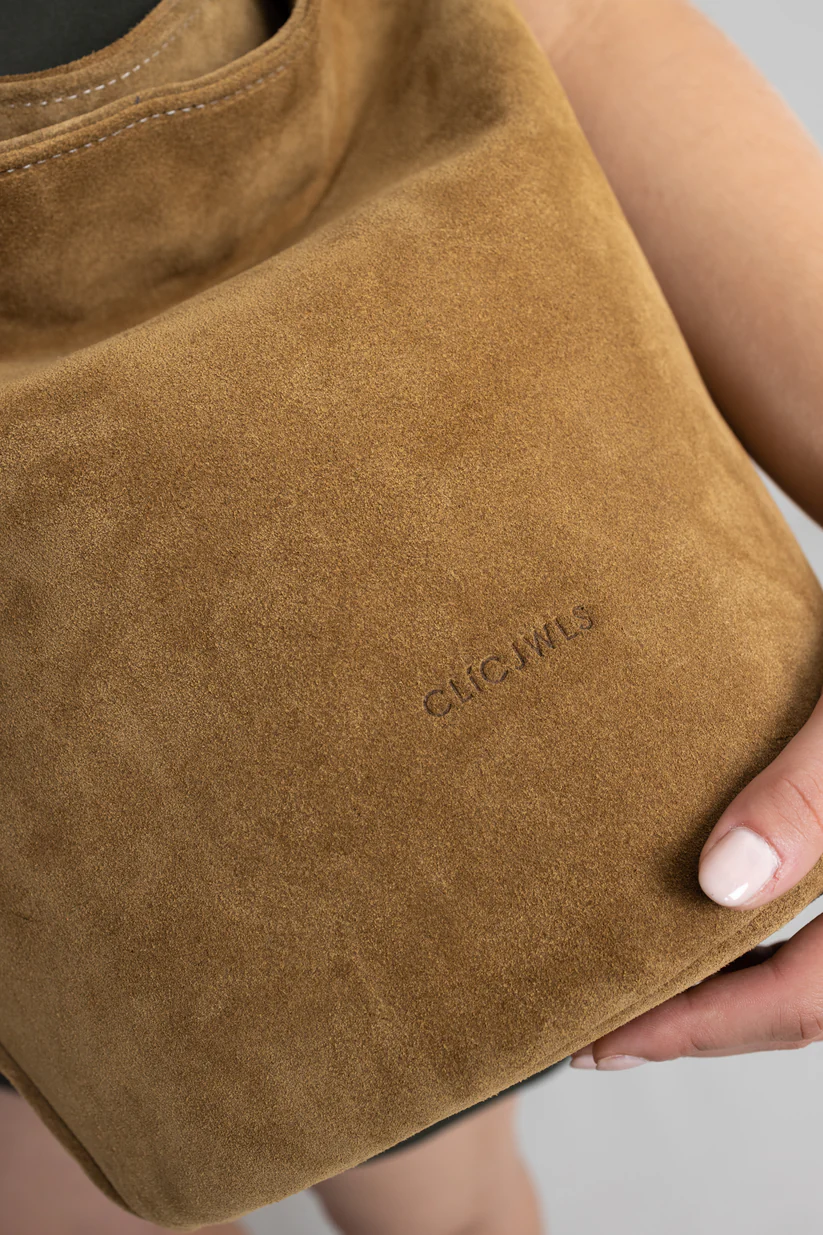 Sandra Bucketbag – Camel suede genuine leather