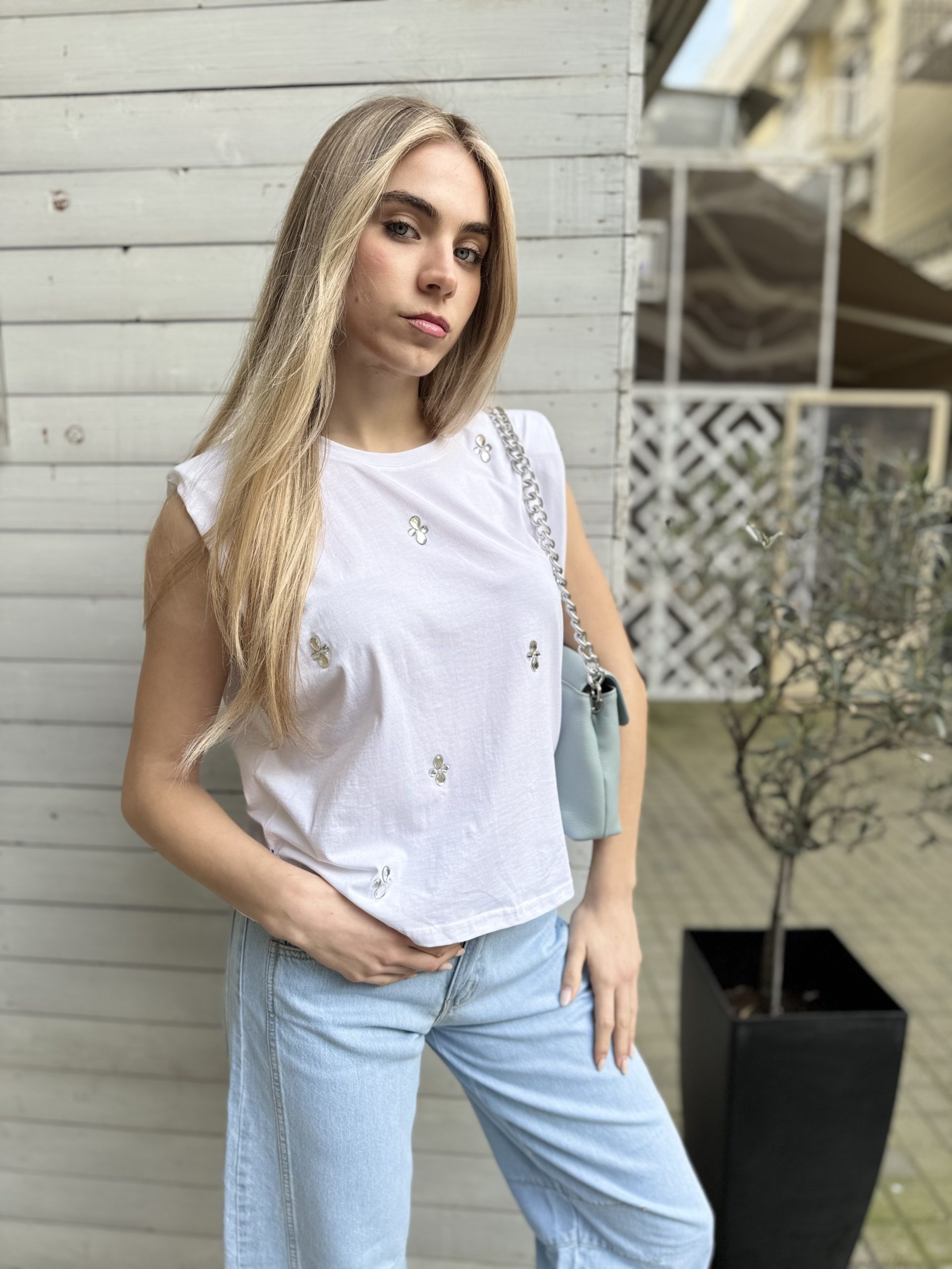 - Αμάνικο T-shirt με κλειστή στρογγυλή λαιμόκοψη