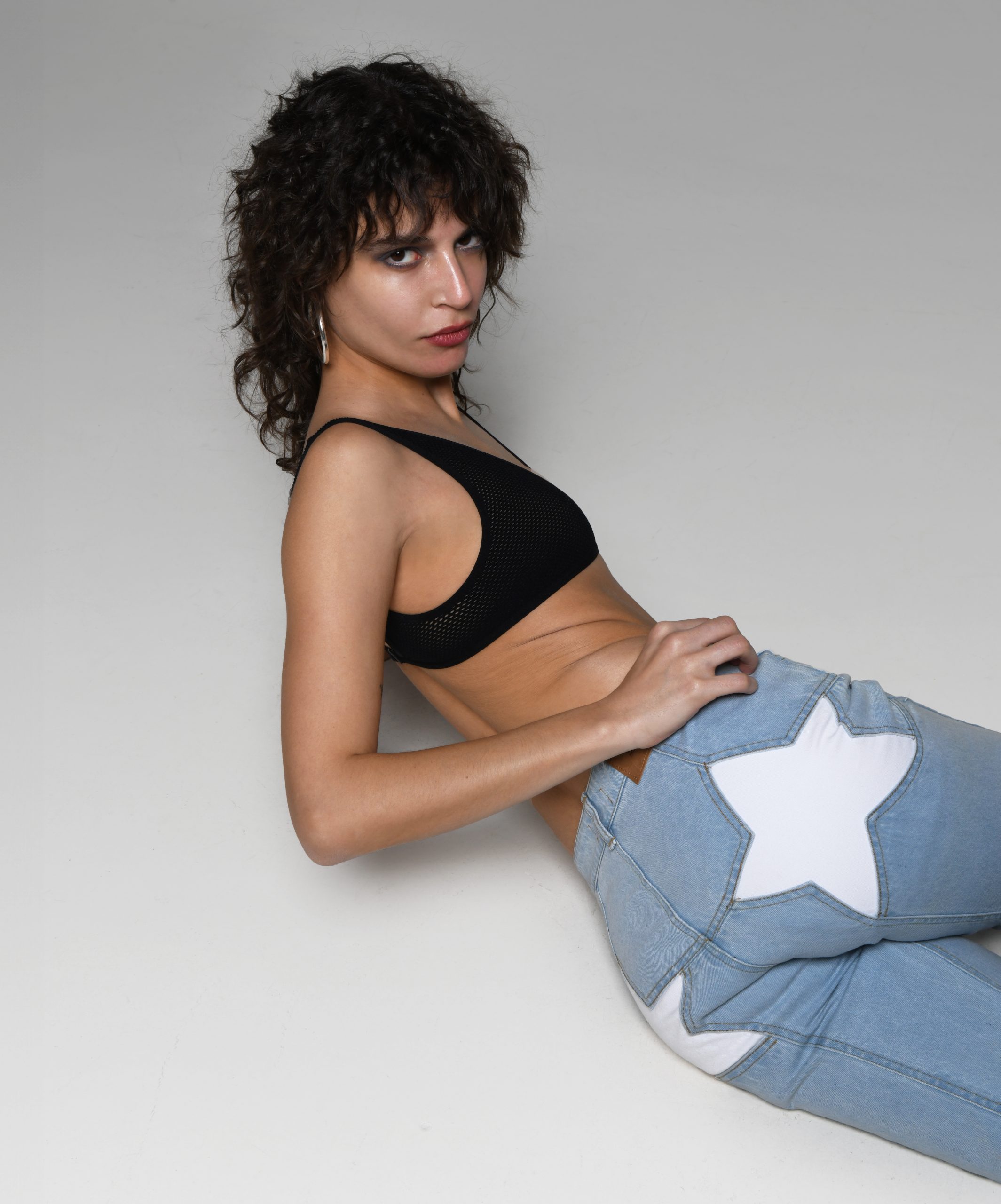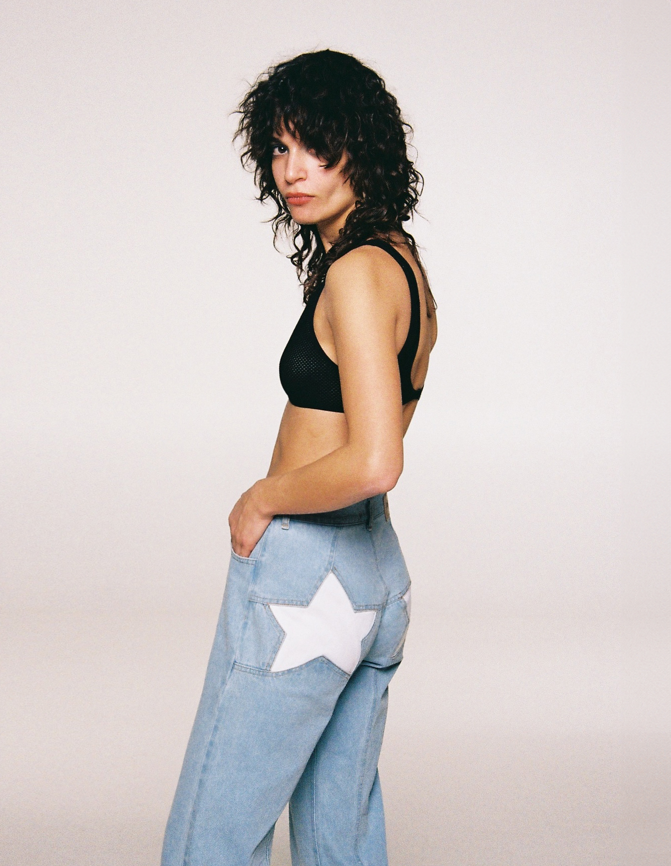 - Εντυπωσιακό τζιν παντελόνι με διακοσμητικά αστέρια στο πίσω μέρος