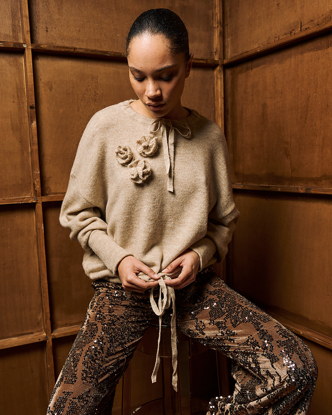 Tailor Made Round neck roses – Beige