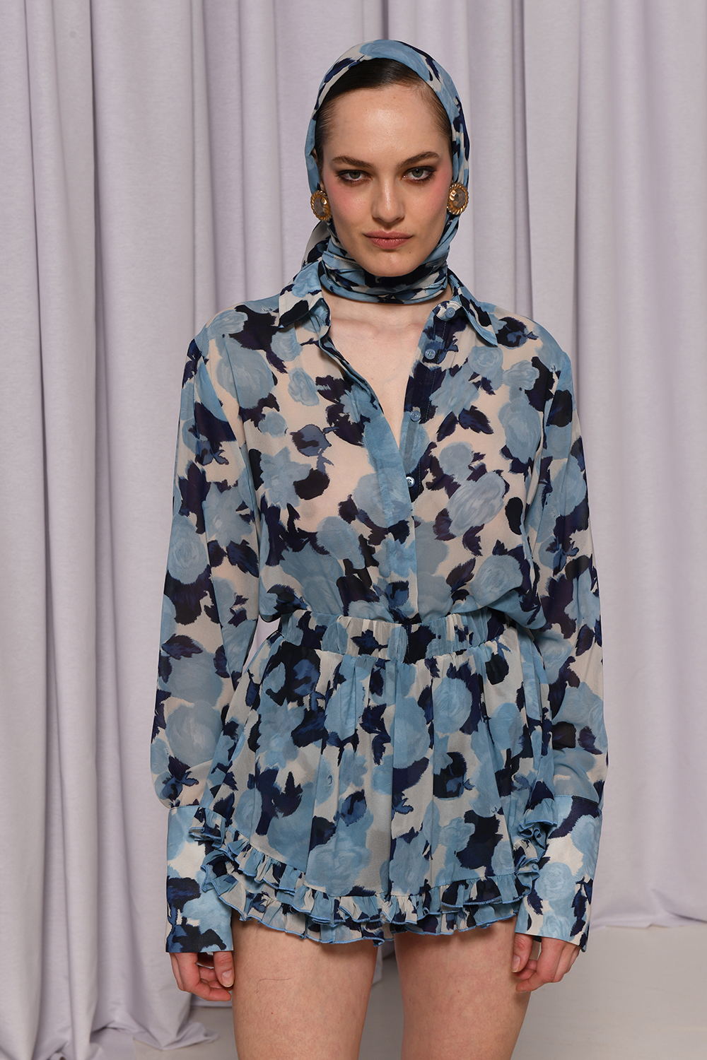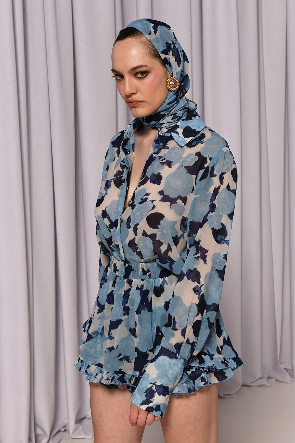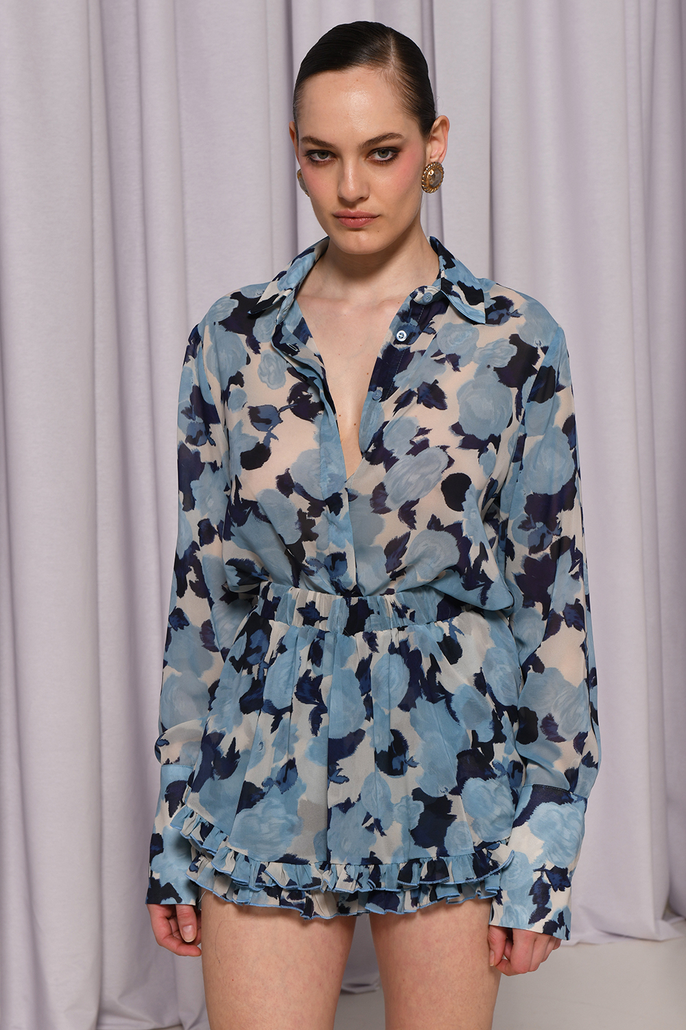 Το Thior Shirt είναι ένα κομψό, ρομαντικό πουκάμισο με floral print σε αποχρώσεις του γαλάζιου και του μπλε. Το ελαφρύ, ημιδιαφανές ύφασμα, η χαλαρή εφαρμογή του και οι μακριές μανσέτες στα μανίκια το καθιστούν ιδανικό κομψές καθημερινές εμφανίσεις αλλά και για βραδινές εξόδους με αέρινη διάθεση για να σε συνοδεύσει στις καλοκαιρινές διακοπές σου.