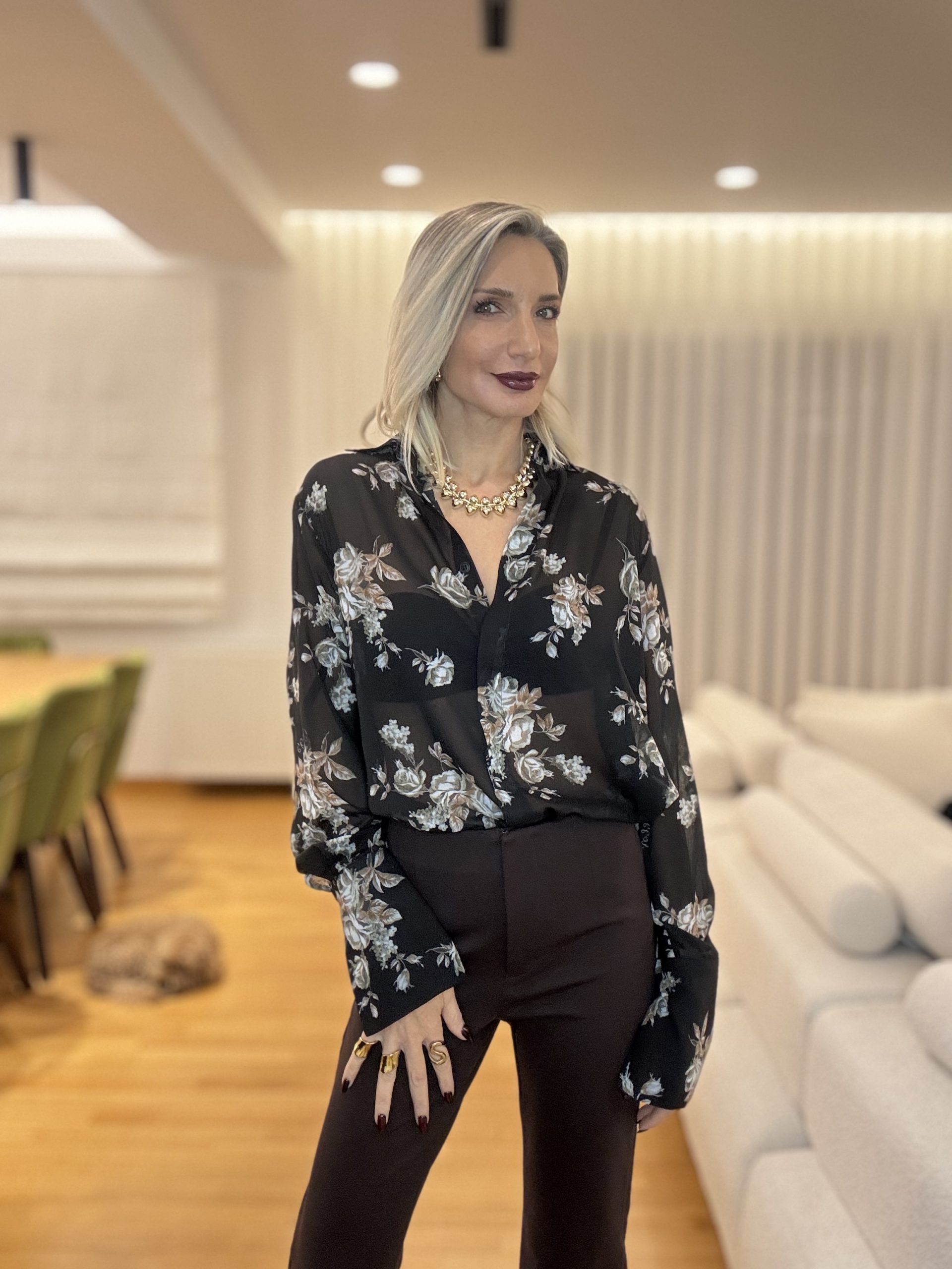 Το Dahlia Chiffon Shirt είναι ένα γυναικείο πουκάμισο σε chiffon ύφασμα, με κομψό floral print και ανάλαφρη εφαρμογή. Με ψηλό γιακά και tie detail, χαρίζει ρομαντική θηλυκότητα και στυλ σε κάθε εμφάνιση. Ιδανικό για casual chic looks αλλά και για πιο formal συνδυασμούς, το floral chiffon shirt είναι το statement κομμάτι που θα απογειώσει τη γκαρνταρόμπα σου.