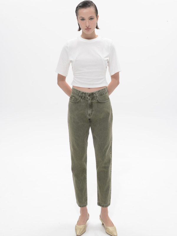 - Παντελόνι τζιν ψηλόμεσο, με cropped τελείωμα μέχρι τον αστράγαλο