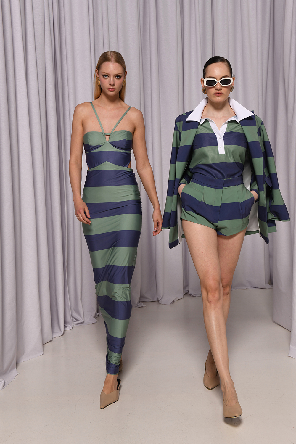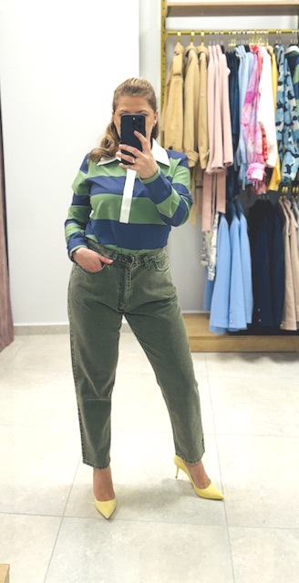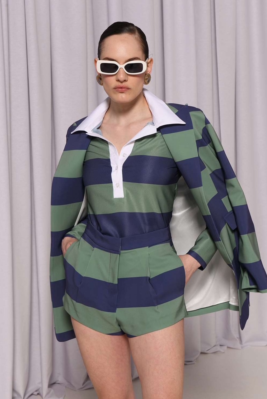 Το Vita shirt είναι ένα κομψό μακρυμάνικο polo μπλουζάκι, ιδανικό για όσες αναζητούν έναν ιδιαίτερο συνδυασμό αθλητικού και εκλεπτυσμένου στυλ. Ξεχωρίζει για το εντυπωσιακό μοτίβο της με πράσινη και μπλε ρίγα, το οποίο προσδίδει δυναμισμό και χαρακτήρα στο ρούχο. Η σατέν υφή του υφάσματος χαρίζει μια διακριτική λάμψη, ενισχύοντας τη θηλυκότητα και την αίσθηση πολυτέλειας. Η συγκεκριμένη μπλούζα προσφέρει άνεση, ανθεκτικότητα και άψογη εφαρμογή, ιδανική για ιδιαίτερες εμφανίσεις ή στυλιστικούς πειραματισμούς με urban αισθητική.